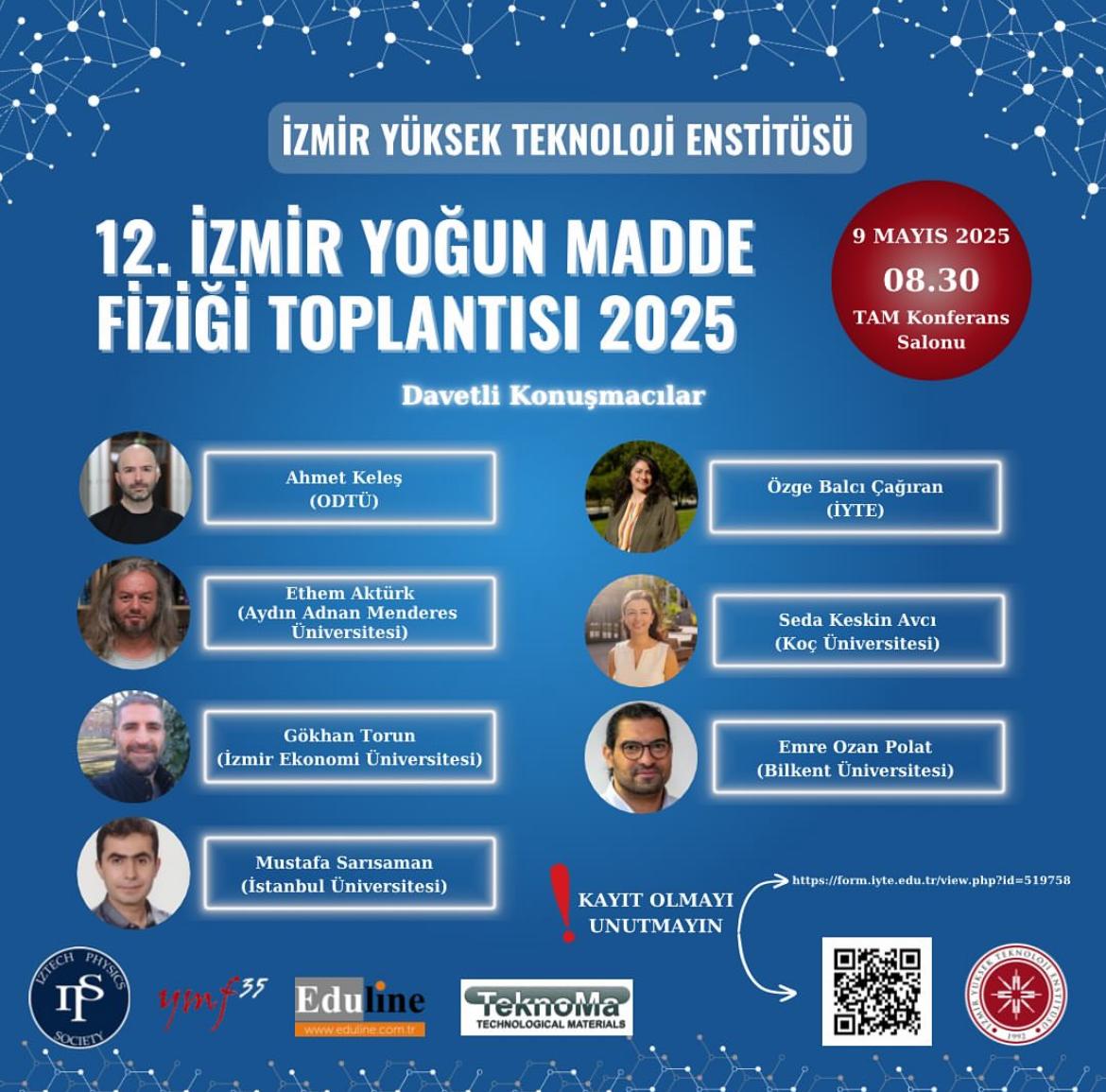 The aim of the CMP-İzmir meeting, which is being held for the twelfth time this year, is to contribute to scientific studies in Condensed Matter Physics and related fields, to accelerate the exchange of information between scientists, and to provide opportunities for new scientific partnerships.