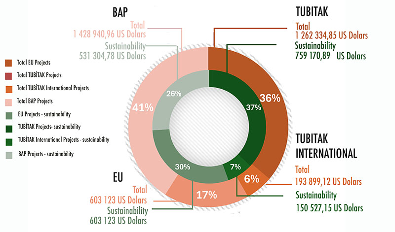 IZTECH has a research ecosystem that is unique for Izmir as the campus area also includes a planned technology development zone, Technopark IZMİR Innovation Center, Technology Transfer Office, and Research Centers. Establishment of dedicatedresearch centers and labs, in addition to startups addressing key sustainability challenges such as renewable energy, biotechnology, biodiversity, water management, and urban resilience and sustainable building design, materials and recycling science, has complementing role in education and research. Students and researchers co-develop and pilot sustainability innovations on campus, through Technopark opportunities which are not only for profit based companies. Sustainability research in IZTECH gets fund from EU projects, The Scientific and Technological Research Council of Turkey (TUBİTAK) projects and IZTECH’s Scientific Research Program. A variety of departments including Civil Engineering, Food Engineering, Architecture, Material Science and Engineering, Bioengineering and City Planning and Environmental Engineering have become partners of EU projects, and have received funding from other institutions. Sustainability research projects follow SDGs precisely.