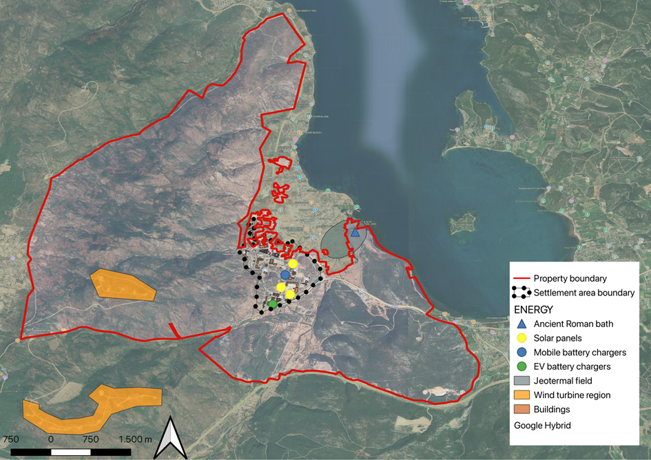 IZTECH completed campus mapping studies that detail important energy and climate elements. This comprehensive map pinpoints the locations of various sustainable resources, including EV charger locations, a mobile charger location, solar energy zones, and a wind turbine zone, alongside historical features like the Ancient Roman bath and a geothermal zone, all made available for public information. Furthermore, to support eco-friendly travel within the campus, the map integrates with an e-scooter application to show the real-time availability and locations of scooters.