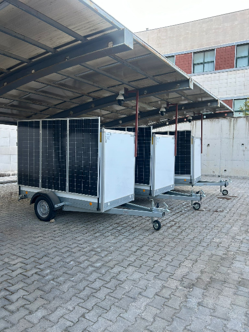 Furthermore, some research groups require electricity even in remote and rural locations, such as on mountaintops. To address these challenging circumstances, they utilize a mobile charger equipped with solar panels. Thanks to these solar panels, this mobile unit is usable in virtually any environment where electricity is needed for research activities.