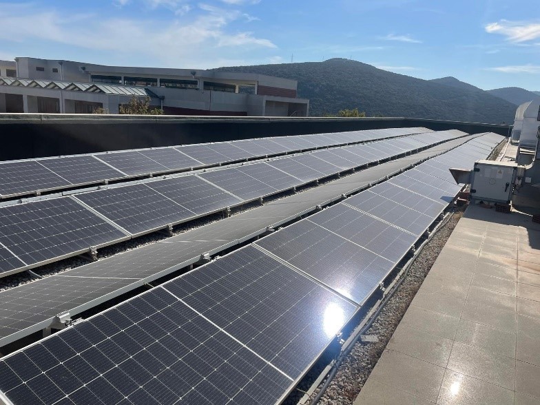 Solar panels and wind turbines are actively working on campus. Electricity is being generated by solar panels on roofs of some buildings as well as the swimming pool being heated by solar power. Wind turbines with 13.5 MW capacity located on our campus generate about 4.72times more electricity than used at the campus. The electricity generated is given to the city hub. IZTECH has achieved positive value on the impact with the last improvements in renewable energy approaches.