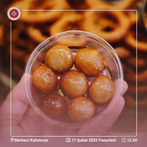 Sweet Treat Offering 17 February 2025 Post News All members of the Izmir Institute of Technology (IYTE) are invited to the Central Cafeteria.