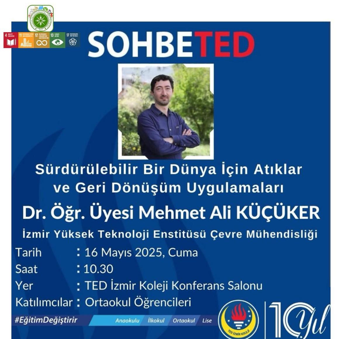 As part of our outreach and science communication efforts, we are proud to announce that Dr. -Ing. Mehmet Ali Küçüker, faculty member of the Department of Environmental Engineering at İzmir Institute of Technology (IZTECH), will deliver a talk titled: “Waste and Recycling Practices for a Sustainable World”at TED İzmir College.